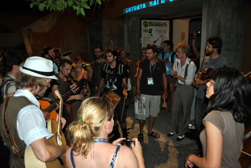 Next, we met the guys and gal from Cornalusa. Two bagpipes, a huge drum and an Irish bouzouki, playing what I could only describe as folk metal. With tremendous volume, energy and ebullience, they put a smile on my face every time I heard them play. Except for once, when we were playing right around the corner from them. I learned that trying to outsing a bagpipe is like trying to outrun a Cheetah: Your throat will get torn to shreds. We had to move somewhere else. That night, one of their pipers, Emanuel, joined in our little jam session. Who would have guessed I’d ever play Carl Perkin’s rock & roll classic ‘Blue Suede Shoes’ with a bag pipe solo in the middle?